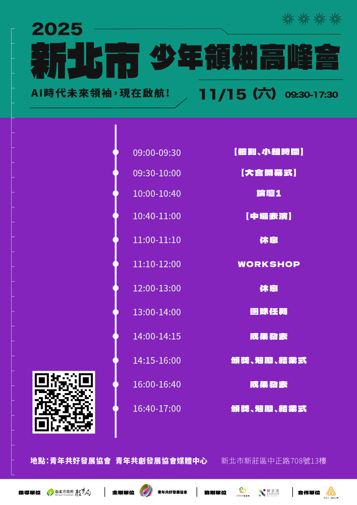 二、為培養青少年因應AI時代的核心素養,本局與「青年共好發展協會」合作,以「AI時代未來領袖,現在啟航!」