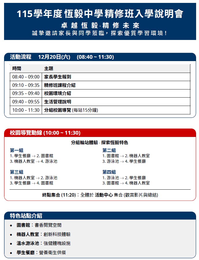 【學務處/全校師生/家長】115學年度恆毅精修班入學說明會