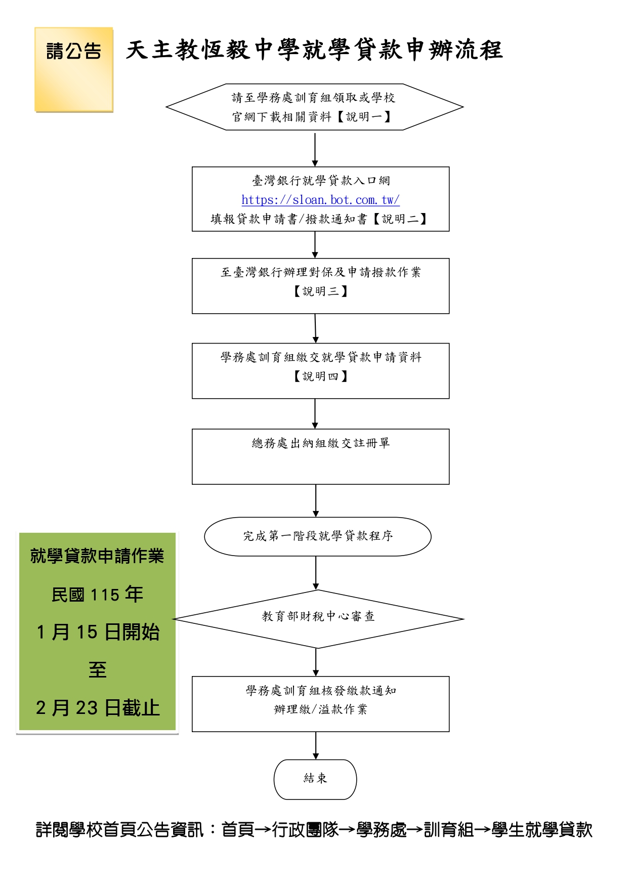 四、有關貴校辦理學生申請就學貸款作業流程,說明如下: