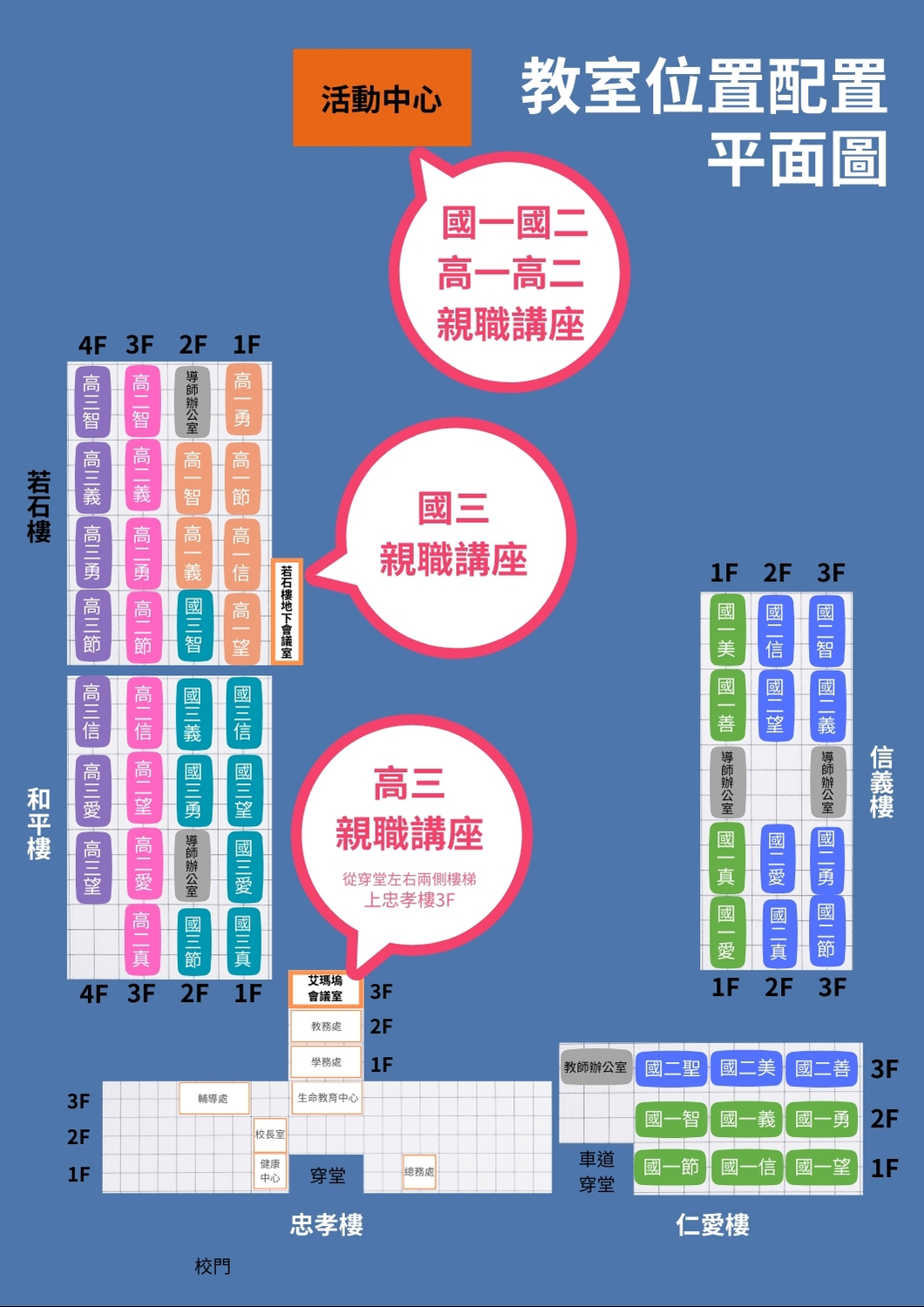 中小學及校內各年級宜相互協調錯開辦理時間,避免各校辦理時間重疊影響家長參與機會。